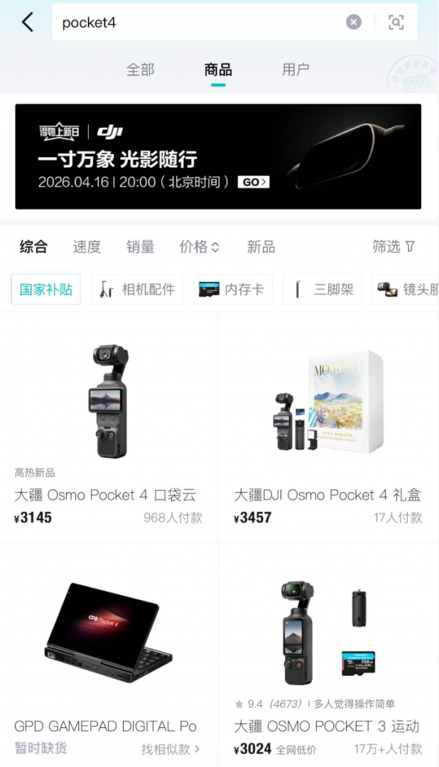 大疆官方正式入驻得物App,Pocket 4新品现货首发快讯