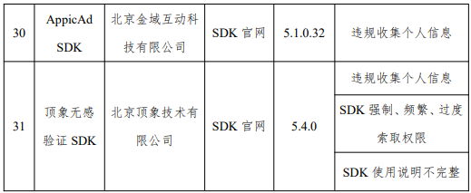 1月22日,工信部通报了31款侵害用户权益行为的APP(SDK)。