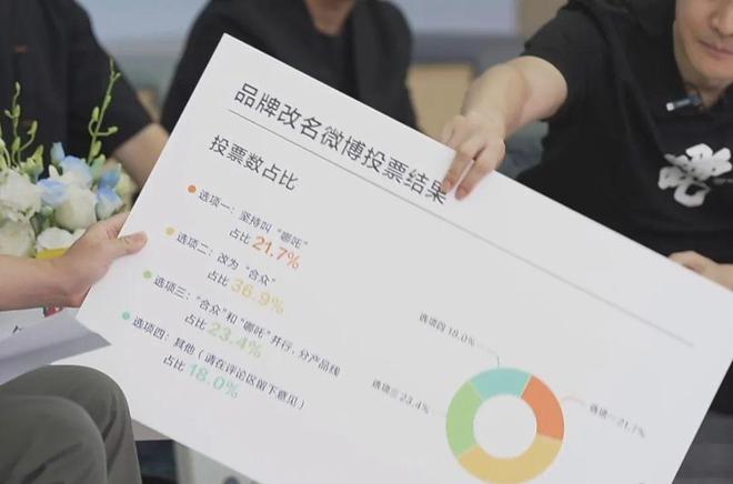 今年6月份,哪吒汽车的管理团队搞了一场名为“哪吒要不要改名”的直播。场面很大,邀请了不少各个行业的大佬在直播间进行讨论,并且还摆出了超50%的网友支持改名的网络投票数据。