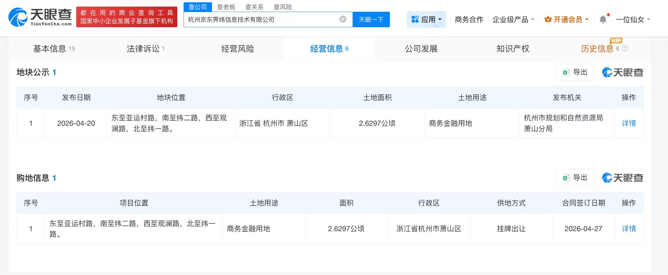 天眼查App显示,杭州京东霁纬信息技术有限公司成立于2025年4月,法定代表人为徐保乾,注册资本10万人民币,由北京京东世纪贸易有限公司全资持股。值得一提的是,商务金融用地属于商服用地下的二级分类,主要用于商务服务及经营性办公场所,涵盖写字楼、金融机构营业场所、企业独立办公场所,以及信息网络服务、电子商务、广告传媒等业态。