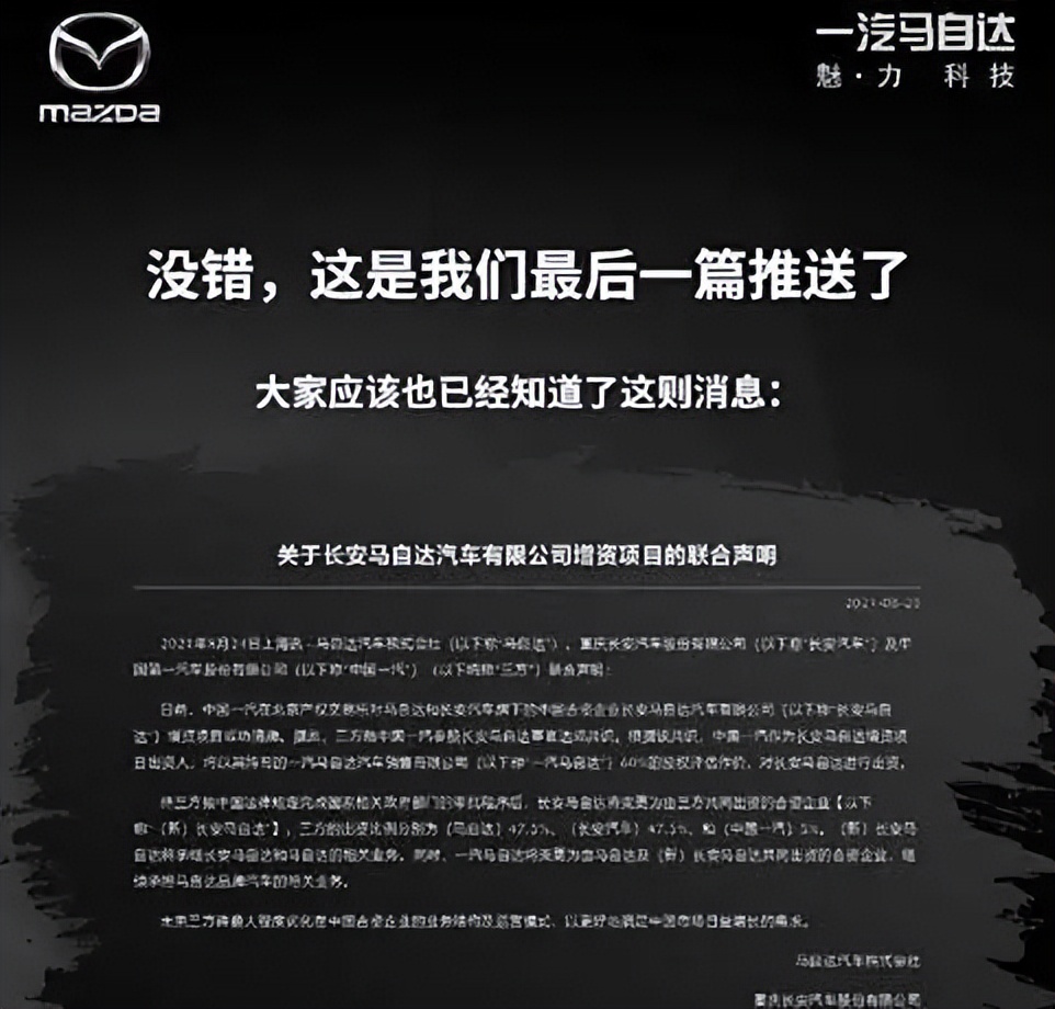 除此以外,站在当前和现实主义的角度,长安马自达同一汽马自达、长安铃木、广汽三菱等合资车企友商一样,也该考虑及时止损、适时退出中国市场了。