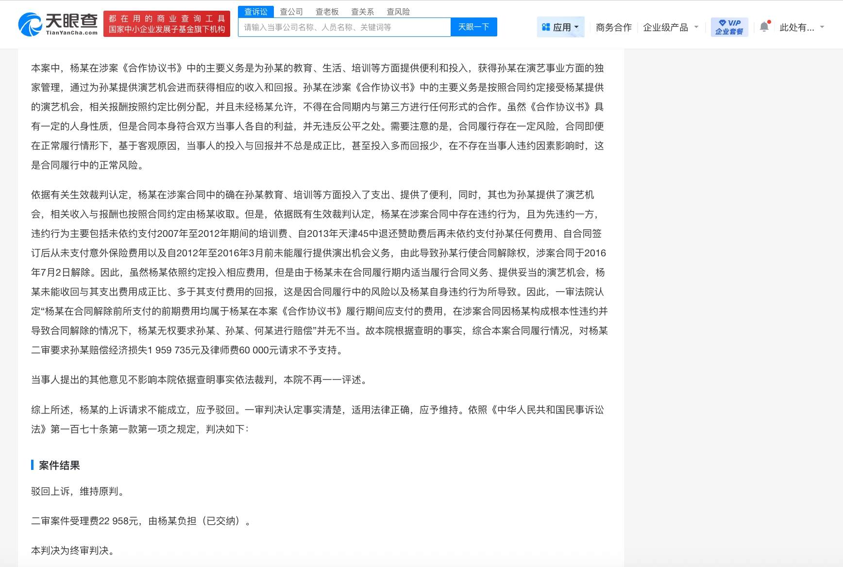 2007年3月,杨钧与宋祖儿及其监护人签订合作协议,约定宋祖儿在合同期内未经杨钧同意,不得与任意第三方进行演艺等方面的合作,同时约定杨钧负责其就学、住房、购车、培训费及演艺事务管理。后双方产生纠纷,宋祖儿一方于2016年7月发函解除合同。