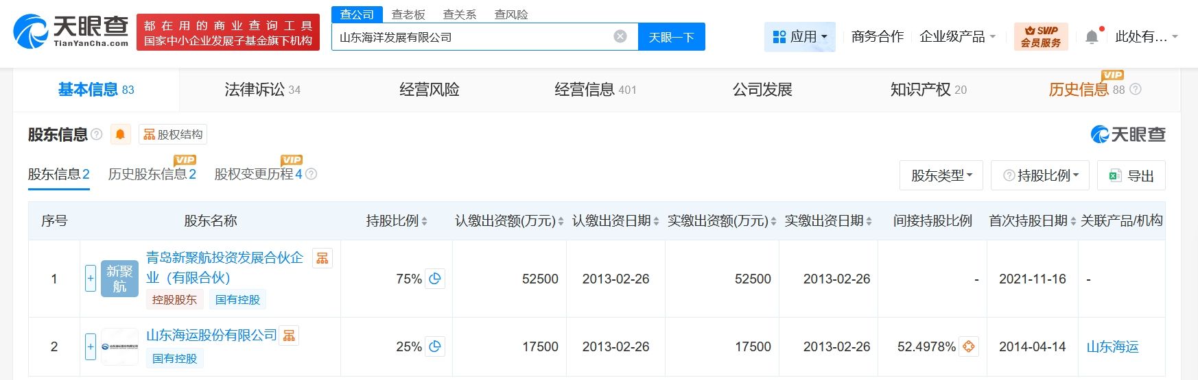 该公司成立于2011年1月,法定代表人为詹风强,经营范围含航运项目管理及服务、商务信息咨询、文化产业投资及管理、投资信息咨询、工程管理服务、以自有资金从事投资活动、互联网销售等,由青岛新聚航投资发展合伙企业(有限合伙)、山东海运股份有限公司共同持股。