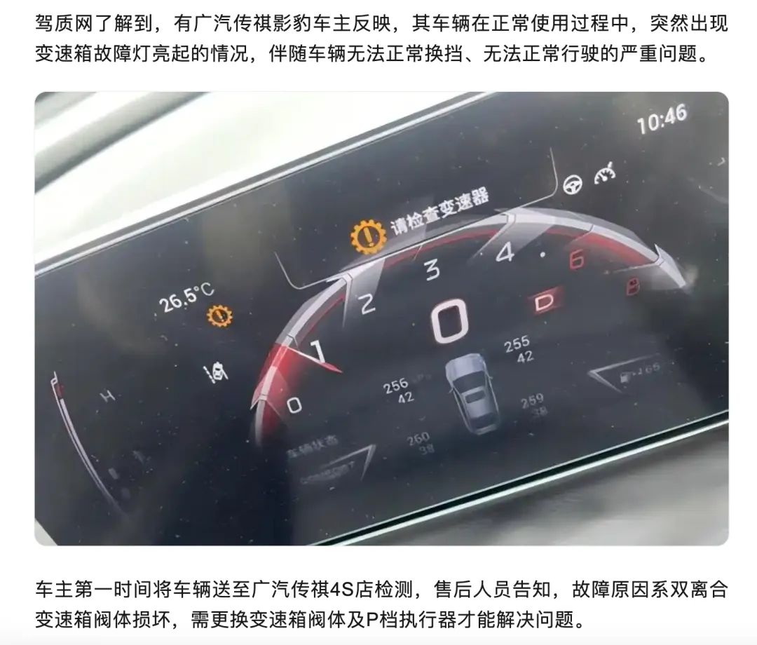 作为广汽传祺主打年轻运动市场的旗舰轿车,影豹曾承载着品牌向上的重任,然而近期多位车主的遭遇却给这款车型蒙上了阴影。据车主反映,车辆在正常使用且仅行驶2万公里的情况下,突然出现变速箱故障灯亮起,伴随无法换挡、无法正常行驶的严重瘫痪状态。