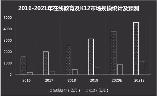 再加上,据中国科学院大数据挖掘与知识管理重点实验室数据显示,2019年在线教育市场规模达3133.6亿元,其中K12在线教育得益于覆盖的年龄阶段长,成为在线教育市场的重要分支之一。中商产业研究院预测,2021年我国在线教育市场和K12在线教育分别为4573.9亿元和1167.4亿元,K12教育市场潜力巨大。