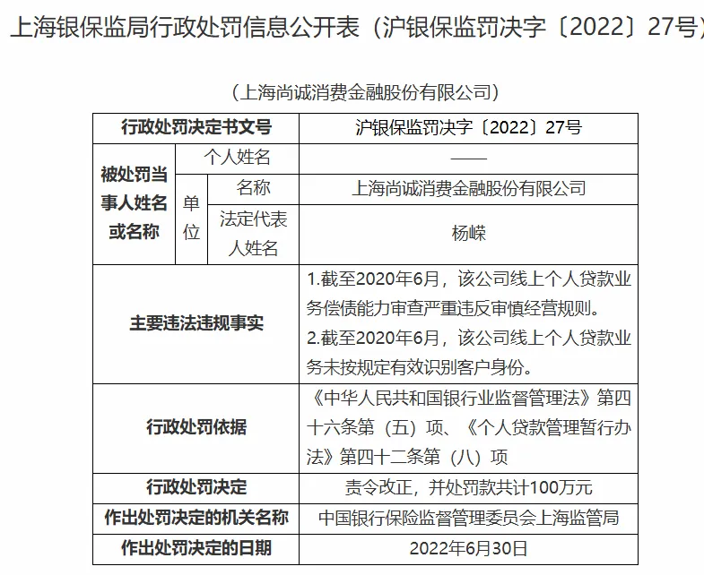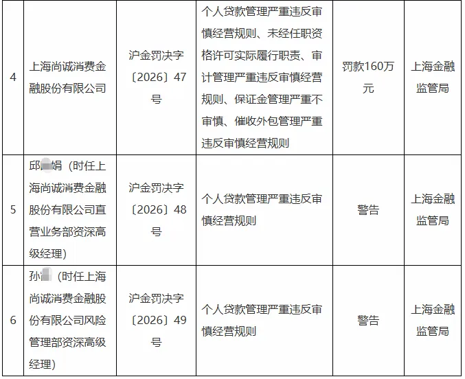2026年3月23日,国家金融监督管理总局上海监管局公示行政处罚信息,持牌消费金融机构尚诚消费金融因五项违规,被处以160万元罚款,引发市场关注。