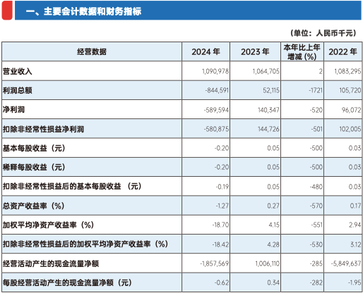 然而,利润总额和净利润却是止不住地亏损。2024年,亿联银行的利润总额为-8.45亿元,相较于2023年的5211.5万元,同比下滑1721%;2022年,利润总额为1.06亿元,由此可见,2023年亿联银行的利润总额就已经出现了大幅下滑。