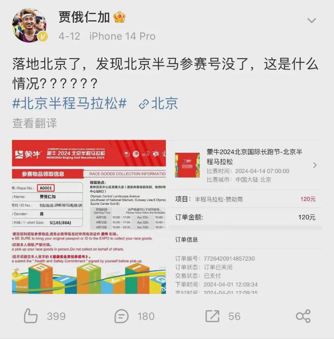4月14日结束的北京半程马拉松赛陷入舆论风波。