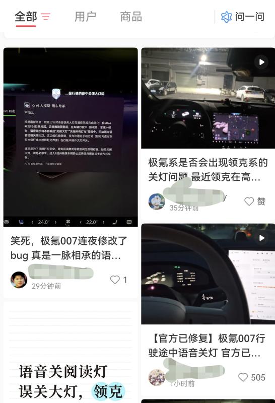 目前,在各大社交平台上,随着领克的“翻车”案例持续发酵,已经引发网民对国内各个品牌语音关闭车灯功能的“BUG”测试。