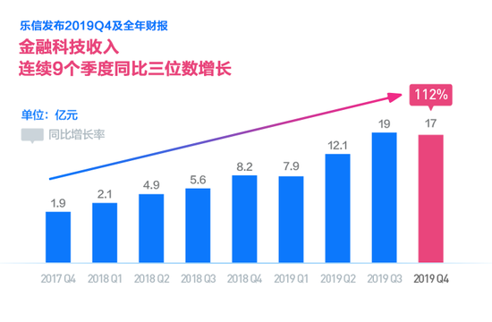 金融科技收入是本次财报的一大亮点。2019年全年金融科技收入达56亿,同比增长171%;4季度,金融科技收入达17亿,同比增长112%。