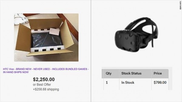 原价799美元的HTC Vive被炒至2250美元,这还不包含高昂的运费。
