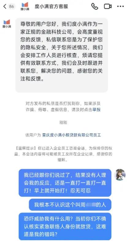 近日,有网友社交平台反映,“最近频繁被度小满电话骚扰,有座机也有手机号码。说一位朋友借了度小满,留的紧急联系人是我。