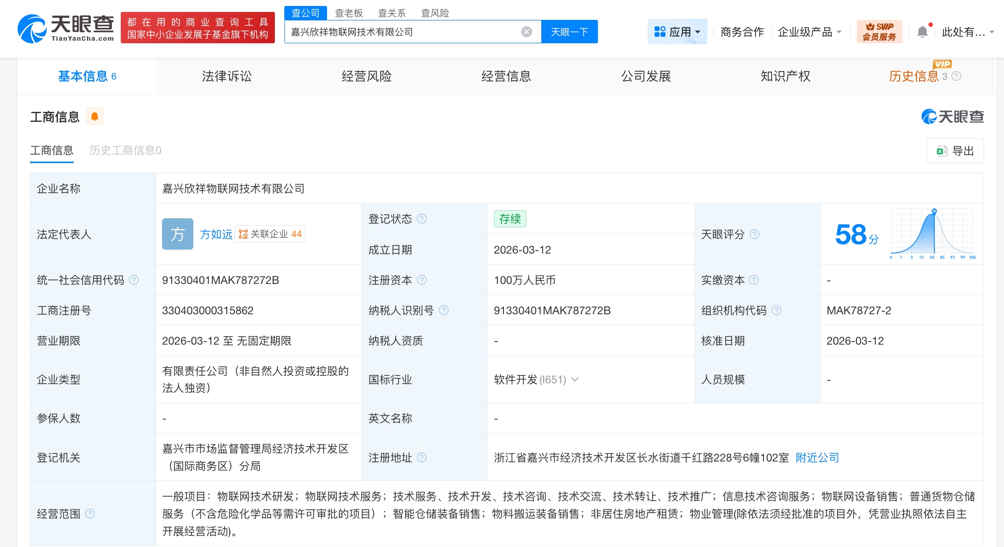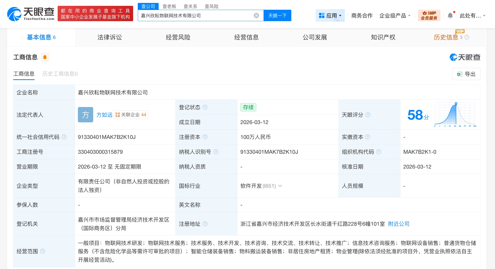近日,嘉兴欣祥物联网技术有限公司、嘉兴欣耘物联网技术有限公司成立,法定代表人均为方如远,注册资本均为100万人民币,经营范围包括物联网技术研发、物联网技术服务、信息技术咨询服务、物联网设备销售、普通货物仓储服务、智能仓储装备销售等。