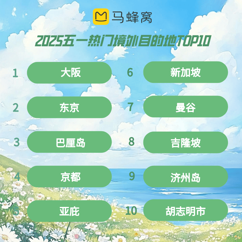 马蜂窝发布五一出行趋势预测,预订周期缩短,免签目的地是出境游首选观点