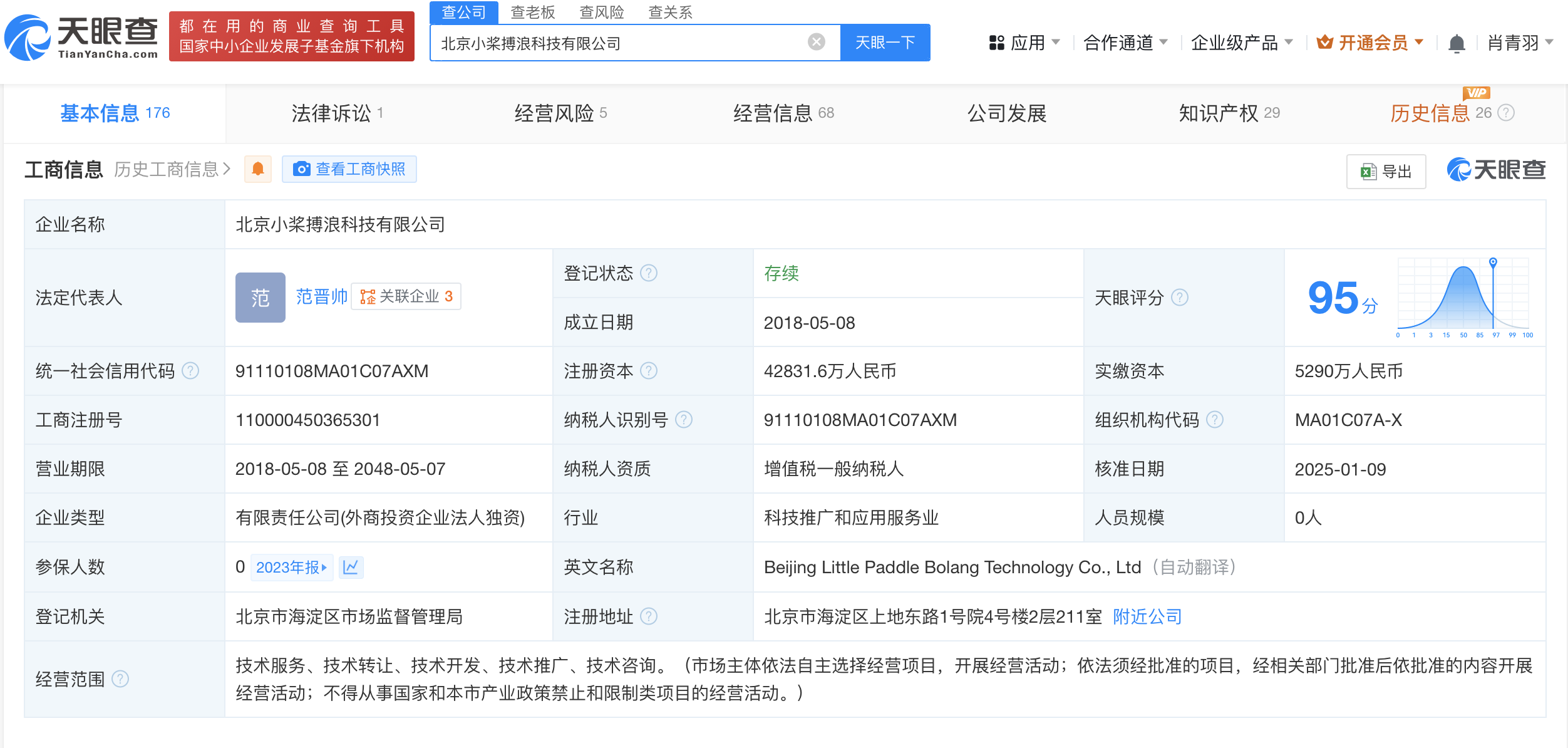 北京小桨搏浪科技有限公司成立于2018年5月,法定代表人为范晋帅,经营范围为技术服务、技术转让、技术开发、技术推广、技术咨询。