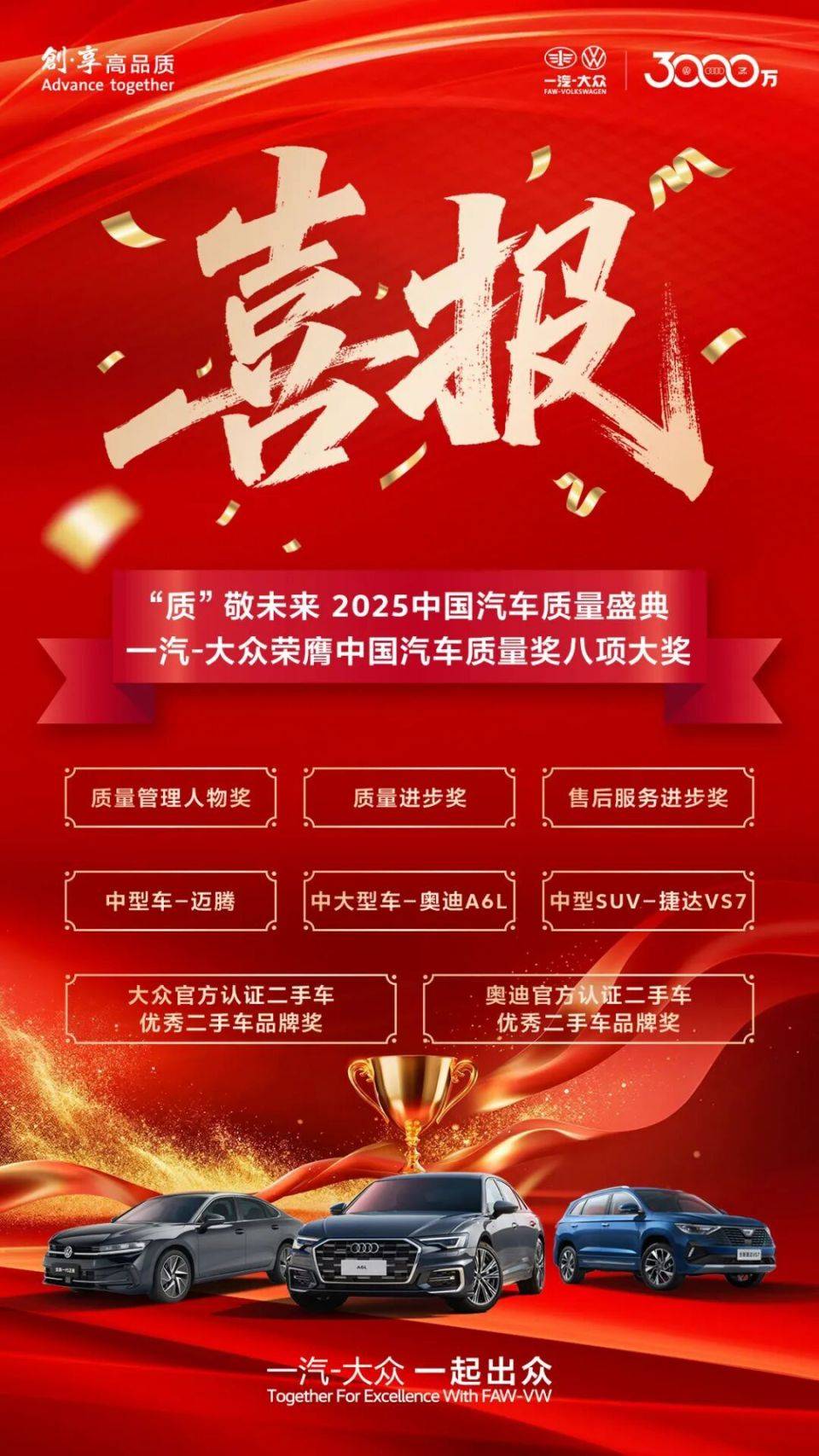 从战略引领扩界到体系认证加身,从新品密集落地到销量稳步增长,一汽-大众将继续践行“质量至上”理念,通过深化数智化转型,以更卓越的德系品质、更智能的技术应用、更优质的服务体验,为中国汽车工业高质量发展树立合资新标杆。
