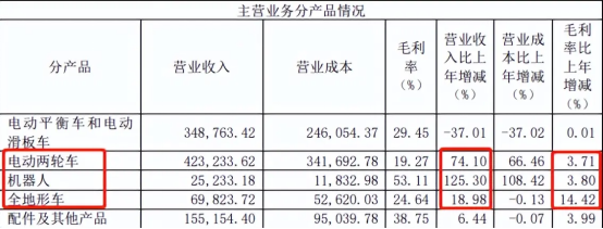 二则,新业务难以快速成长。比如九号旗下备受瞩目的机器人业务,不仅具有较高的科技含量,其去年的毛利率更高达53.11%,但这一业务目前的体量还较小,去年仅实现了2.52亿元的营收,虽然增速不慢,但要成长为参天大树,恐怕还需要很长的周期。