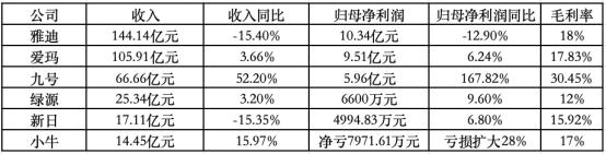 其他传统电动两轮车企如绿源和新日,今年上半年的净利润均保持正增长,但近年业绩也受到市场缩量影响而有所下滑。