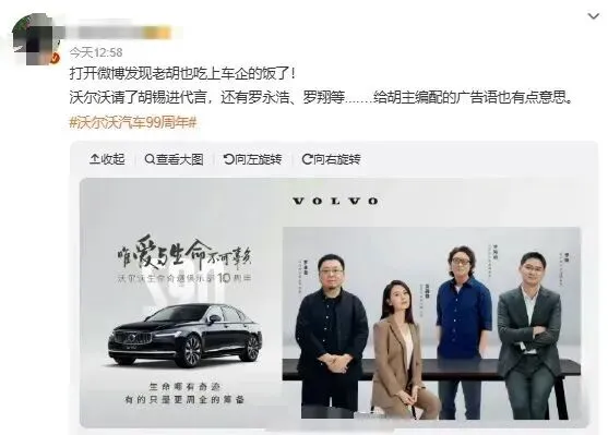 量价齐跌,不惜找来罗永浩、罗翔、胡锡进等争议性网络大V来搞流量,沃尔沃的好人缘被加速败坏!