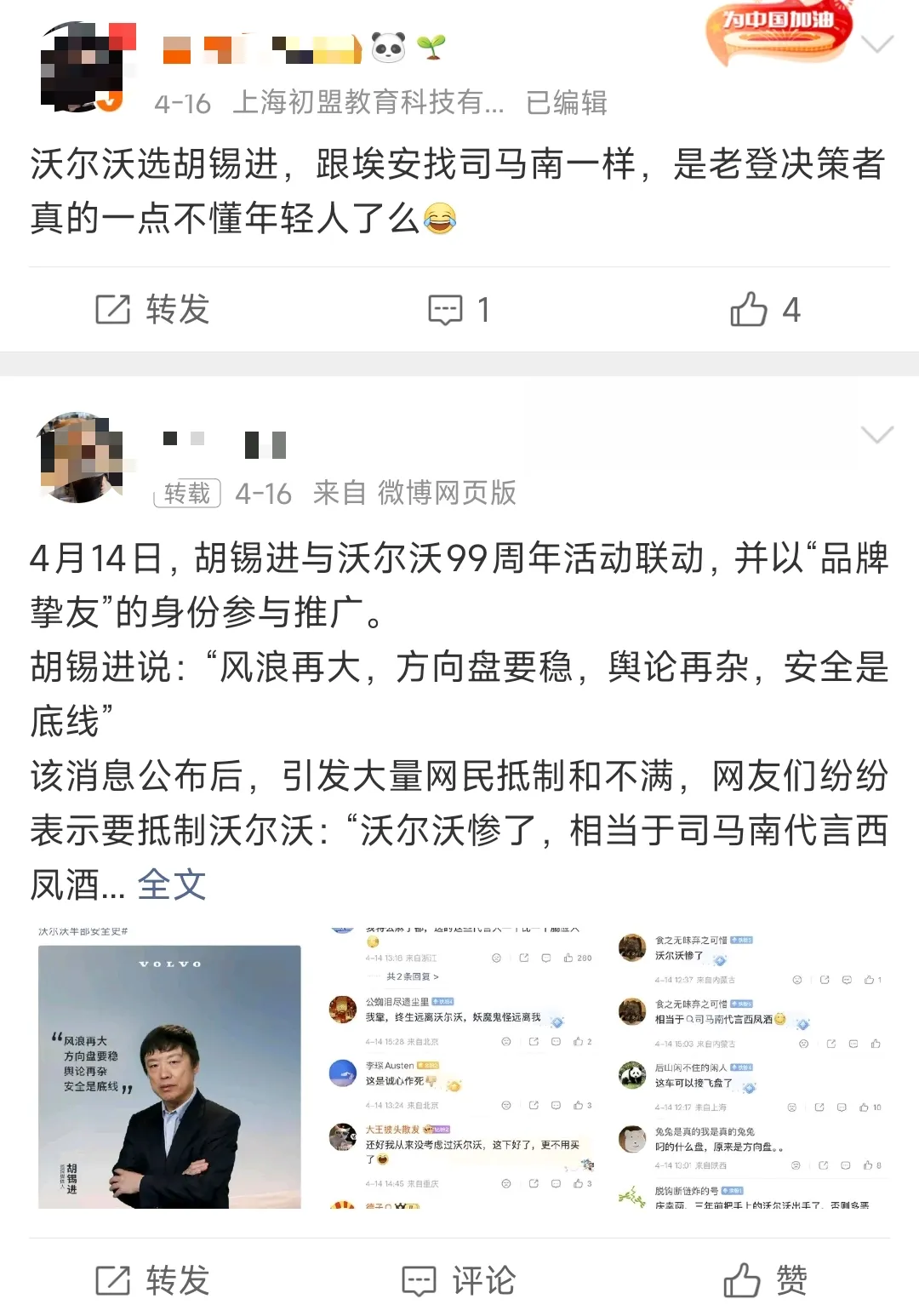 尤其是胡锡进这位新闻媒体界的挚友代表,更是让沃尔沃汽车陷入到一场巨大的争议风暴。