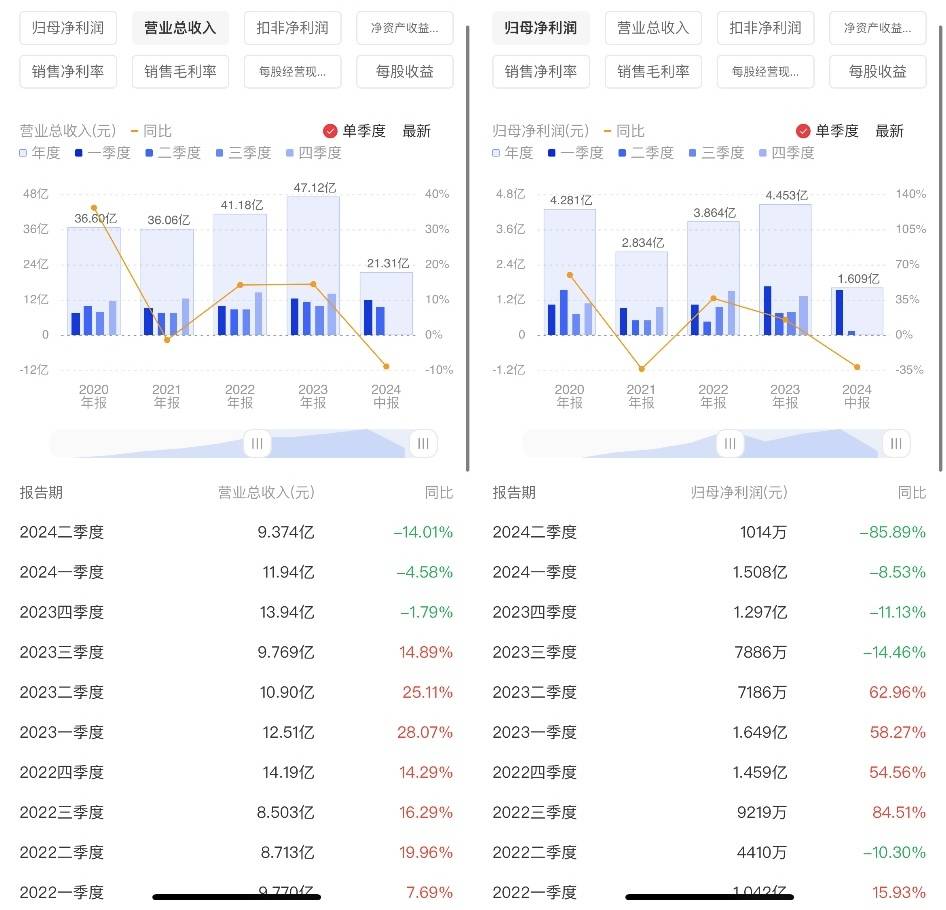然而时隔两年,小熊电器的年中答卷再次出现营收、净利双下滑的情况,而这次营收的同比降幅比2021年更大。