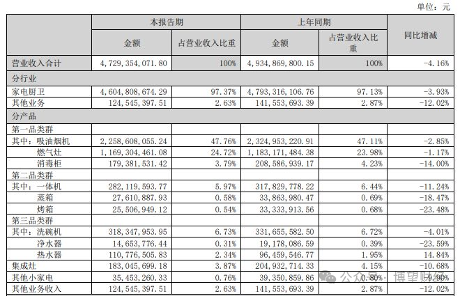 对于业绩下滑,公司解释称,国内房地产行业依然处于出清阶段,厨电行业受到市场竞争加剧、居民消费意愿下降等因素影响,整体市场增速式微。