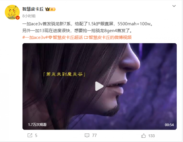 直屏党的最爱!李杰疑似暗示一加Ace 3V:全球首发高通最强骁龙7系快讯