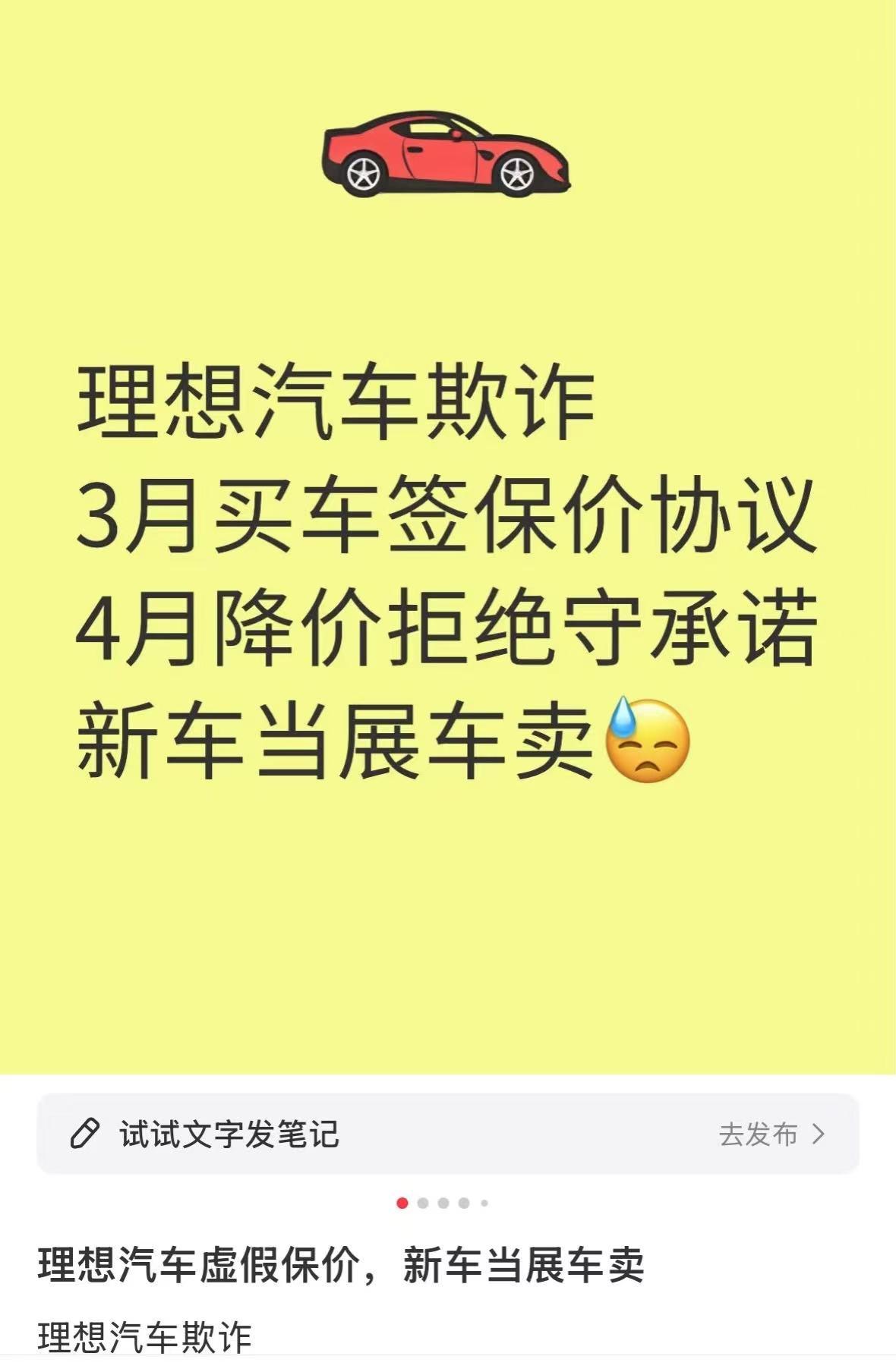 另一位车主对于理想汽车的这种行为表示“为的就是我们买的时候有保价协议,怕有人闹。”