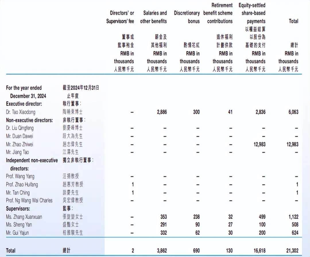 其实,赵志伟的薪酬相比此前其实已经大幅下降,他在2023年的薪酬甚至高达2140.6万元,同样是全部来自以权益结算以股份为基础的支付。