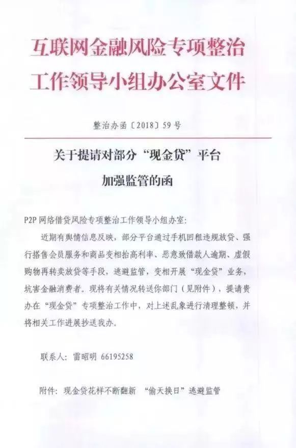 其实早在2018年5月30日,互联网金融风险专项整治工作领导小组办公室向P2P网络借贷风险专项整治工作领导小组发送了《关于提请对部分“现金贷”平台加强监管的函》,要求清理整顿“强行搭售会员服务和商品变相抬高利率”等变相开展“现金贷”业务的现象。