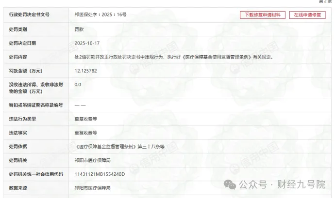 就在2025年3月份,该医院已经因为医保违规被处罚过一次!