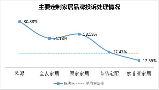 据消费保数据显示,2020—2024年家居行业累计投诉量达8071件,其中,索菲亚家居的投诉解决率远低于同行,仅为12.35%。