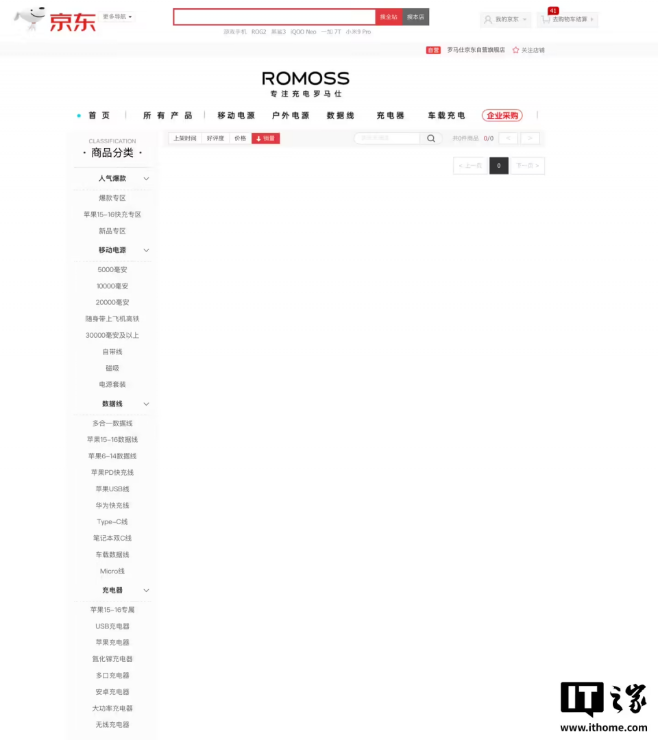 罗马仕京东自营旗舰店下架所有移动电源商品,仅在售数据线 / 充电头快讯