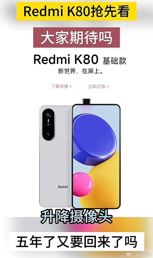 据数码博主最新发布的信息显示,几年前曾兴盛一时的升降摄像头可能要在Redmi K80上回归,以实现真正的全面屏。而此方案早年前曾被Redmi K30 Pro使用,实现了正面没有任何水滴、刘海和打孔的真全面屏,在当时备受用户的欢迎。