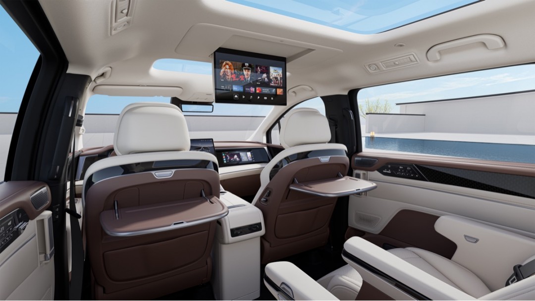 ——AR投影侧滑门和尾门功能,中排座椅不仅有按摩功能,色彩方面采用绾棕+润米、远山黛+润米两款内饰配色。