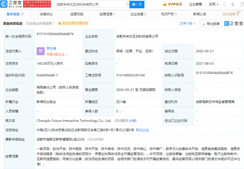 【TechWeb】企查查APP显示,8月3日,成都未来式互动科技有限公司发生工商变更,新增B站关联公司上海幻电信息科技有限公司为股东,同时公司注册资本由119.05万元人民币增加至140.06万元人民币,增幅为17.65%。
