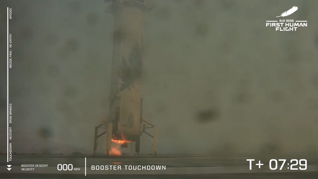 21:20,新谢泼德号推进器垂直软着陆于发射台。