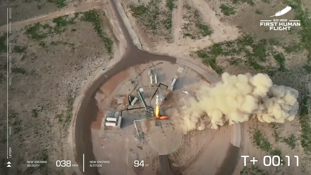 7月5日,在卸任亚马逊公司首席执行官职务后,贝索斯依旧是蓝色起源(Blue Origin)公司CEO,与贝索斯同赴太空的宇航员还包括贝索斯的弟弟马克·贝索斯(Mark Bezos),82岁的女飞行员沃利·芬克(Wally Funk)以及18岁的物理专业学生奥利弗·戴曼(Oliver Daeman);后两位在本次飞行中创造了有史以来最年长和最年轻的宇航员新纪录。在飞行过程中,飞行乘组会体验到3G左右的过载。作为商业太空旅游的开拓者,贝索斯的这次太空游不但创造了宇航员年龄的新纪录,还颇有民用太空飞行时代“莱特兄弟”意味。