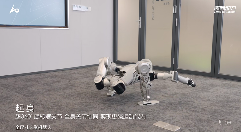 实现全身多关节协同大范围运动,该机器人腰部可大范围全向旋转,逐际动力全尺寸人形机器人最新测试曝光。
