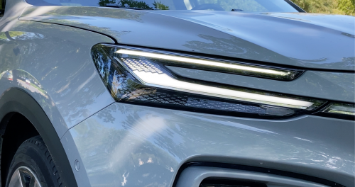 站在MarvelR面前,你才会察觉这台车的紧凑身形,广告照片中强调的未来感造型、立体化悬浮展翼格栅、数字化涌现荣麟纹理,以及车头尾采用的横贯式灯带,都在实车上显得匀称协调。