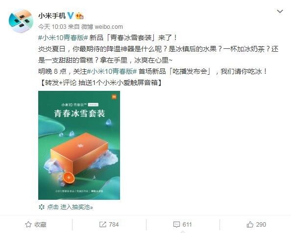 晚上8点见!小米10青春版将推青春冰雪套装快报
