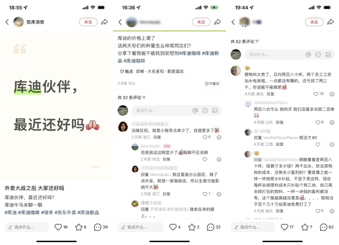 去年突如其来的外卖大战,虽然为库迪加盟商带来了一波流量,但部分单品价格低至1.68元,即便有库迪的“兜底”政策,也有加盟商表示,在外卖平台抽成后,单杯利润其实不高。