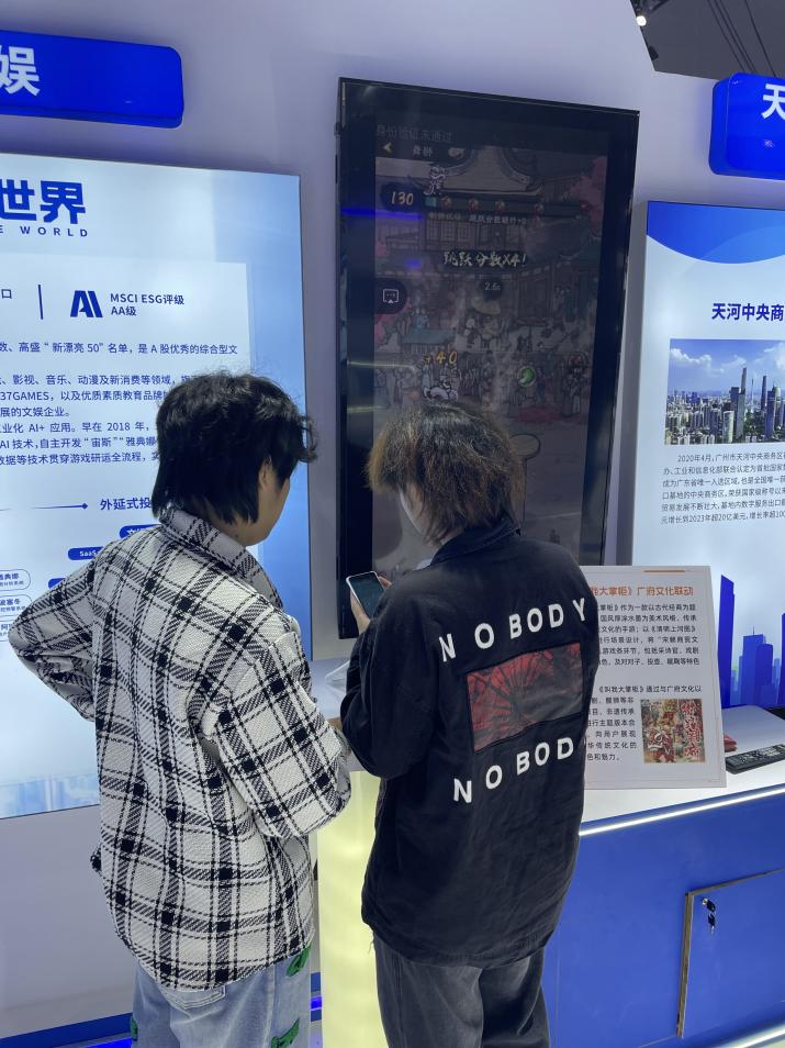 醒狮在高桩上一跳一跃间,文化传播在此刻具象化。在人工智能展区中,三七互娱带来了《叫我大掌柜》“狮跃广府”版本的“高桩舞狮”体验,现场观众通过触屏时间蓄力,控制弹跳力度,沉浸式感受高桩舞狮的惊险与魅力。在三七互娱看来,随着数字技术的不断成熟与应用,高度沉浸式的“科技+文化”互动体验使文化内容以更加直观、生动的方式触达观众,促进中华文化的全球化传播与认同。