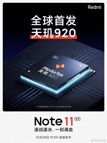 Redmi Note 11系列今晚亮相:首发天玑920 脱胎换骨的升级快报