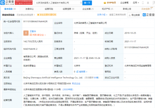 【TechWeb】企查查APP显示,11月17日,北京深纳普思人工智能技术有限公司发生工商变更,新增小米关联公司瀚星创业投资有限公司为股东,同时公司注册资本由117.65万元人民币增加至142.76万元人民币。