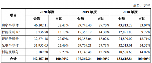 其中,功率半导体收入贡献度最大,2020年该业务实现营收4.61亿元,占总营收比例为32.41%;智能传感器和光电半导体分别实现营收3.23亿元和3.20亿元,占总营收的比例也均超过20%。