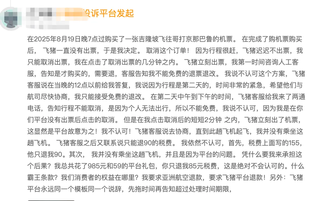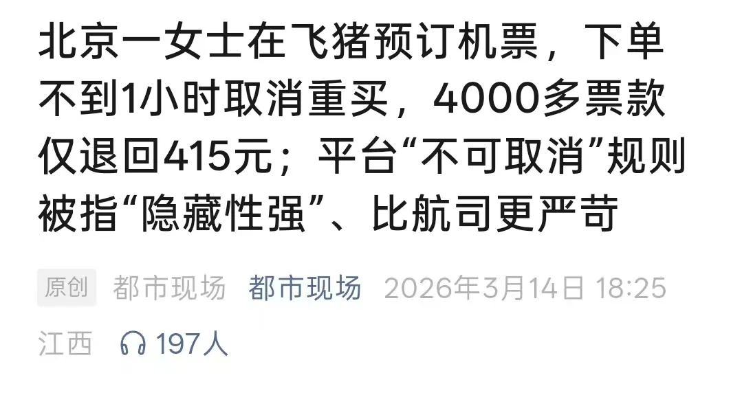 4000多的机票仅退415元!飞猪,顶风逆行观点