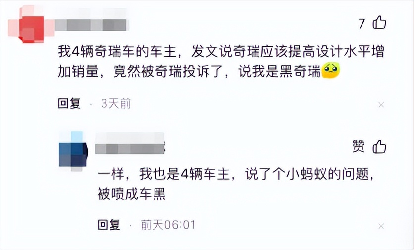 甚至在不少留言评论区还可以看到,对于不少老车主提出的问题反馈,也是被奇瑞官方投诉,还有的还被“喷成筛子”。