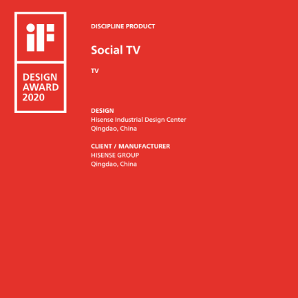 iF 设计奖创立于1953年,是由德国历史最悠久的工业设计机构——汉诺威工业设计论坛(iF Industrie Forum Design)每年定期举办的。它以“独立、严谨、可靠”的评奖理念闻名于世,旨在提升大众对于设计的认知,素有“产品设计界的奥斯卡奖”之称。在本次2020年评选中,海信社交电视荣膺产品设计奖。