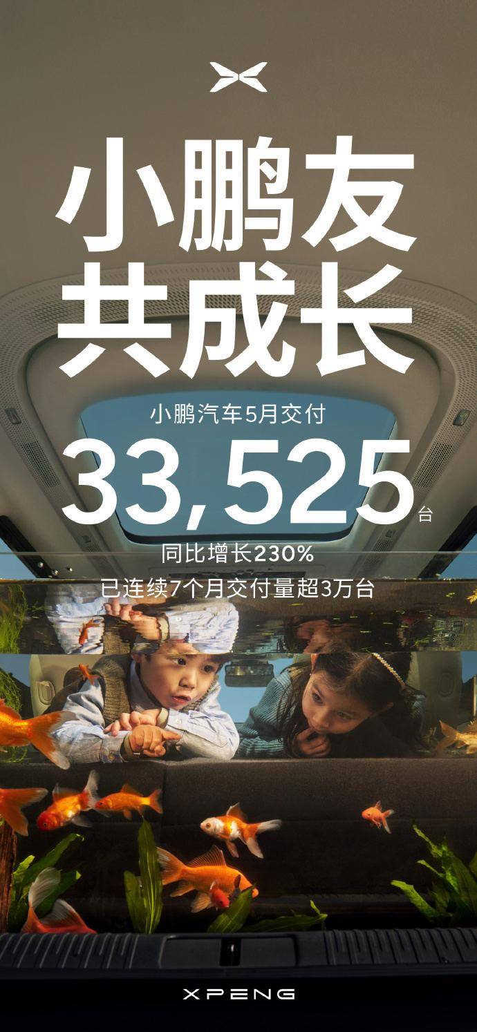 小鹏汽车5月交付新车33525台 同比增长230%汽车